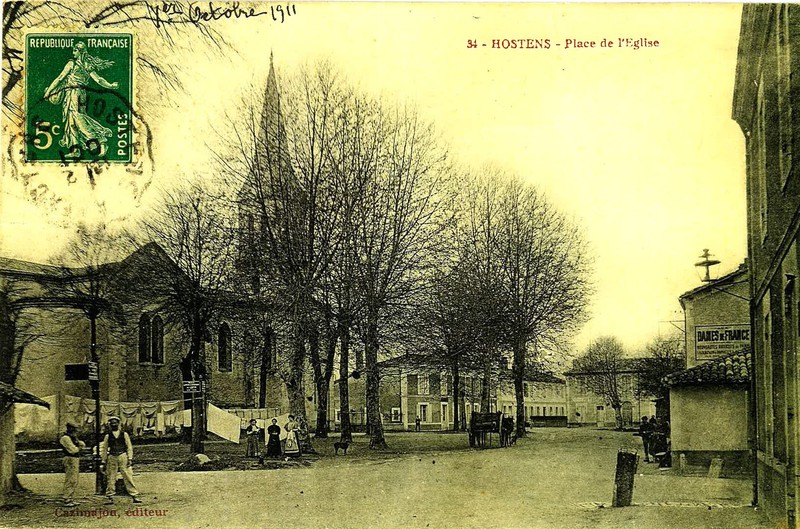 A partir du XV e siècle, l’habitat sur la commune et ses environs s’étoffe. La vaisselle évolue grandement : on voit apparaitre des cruches à becs pontés, des poêlons, des lèches frites, des bols à oreilles, des marmites ……. Hostens est un centre assez important, la chapelle de Rétis bâtie entre 11450 et 1497 a laissé des écrits (redevances du prieur de Mons) montrant que les habitants d’Hostens vivaient dans les maisons en torchis recouvertes de tuiles à Rétis. Le bourg d’Hostens entretenait une église dont il reste un fenestrage flamboyant dans le chœur de l’église. Avec quelques traces de peintures repérées sur des pierres en réemploi. Le clocher du XVe siècle, barlong a été remplacé au début du XXe siècle par le clocher actuel néo gothique.